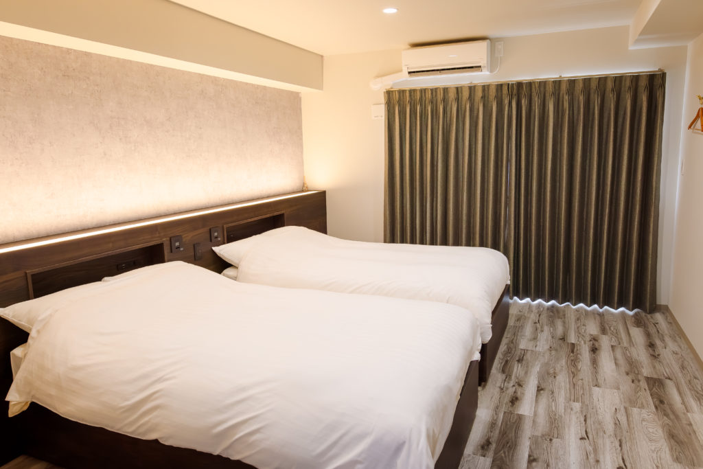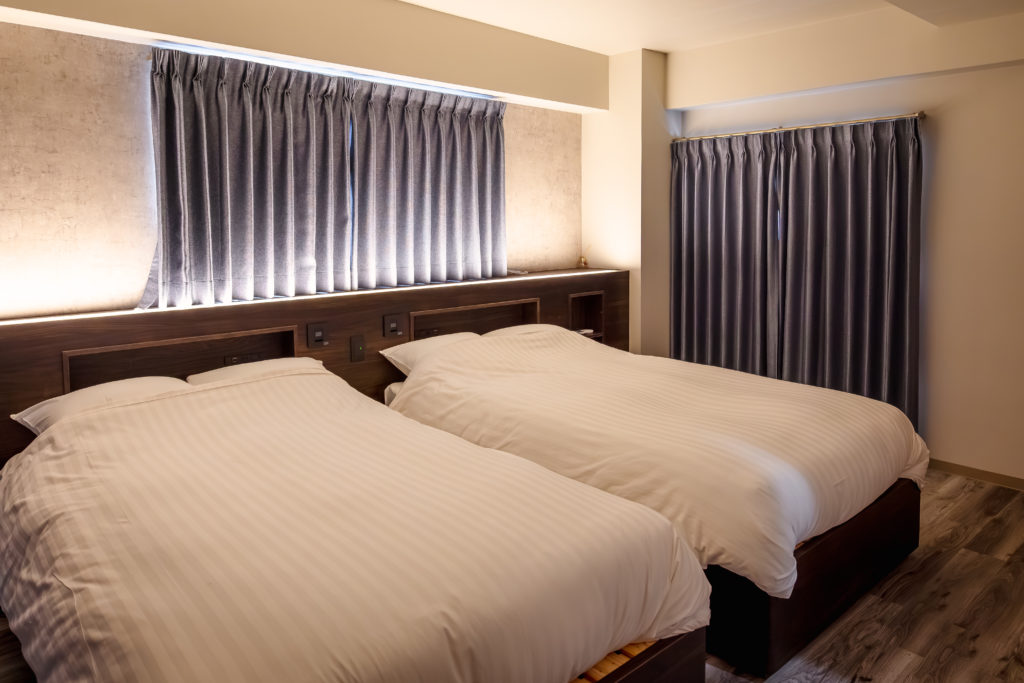 寝室・・・ 客室1(セミダブルベッド2台)、客室2(セミダブルベッド2台)
